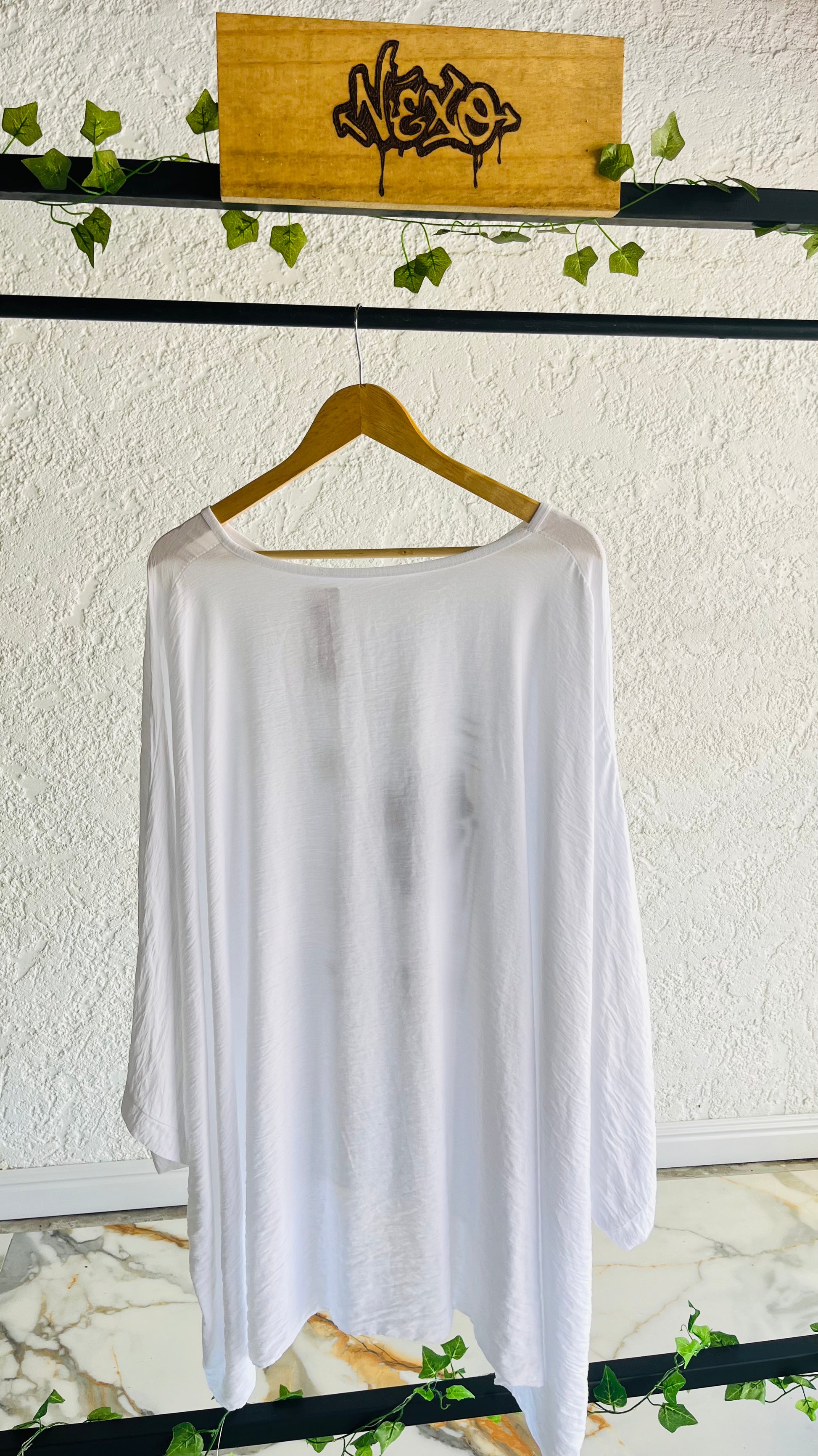 Este blusón de línea amplia está pensado para quienes buscan comodidad sin resignar estilo. Su caída fluida y envolvente genera movimiento natural y un efecto favorecedor en cualquier silueta.