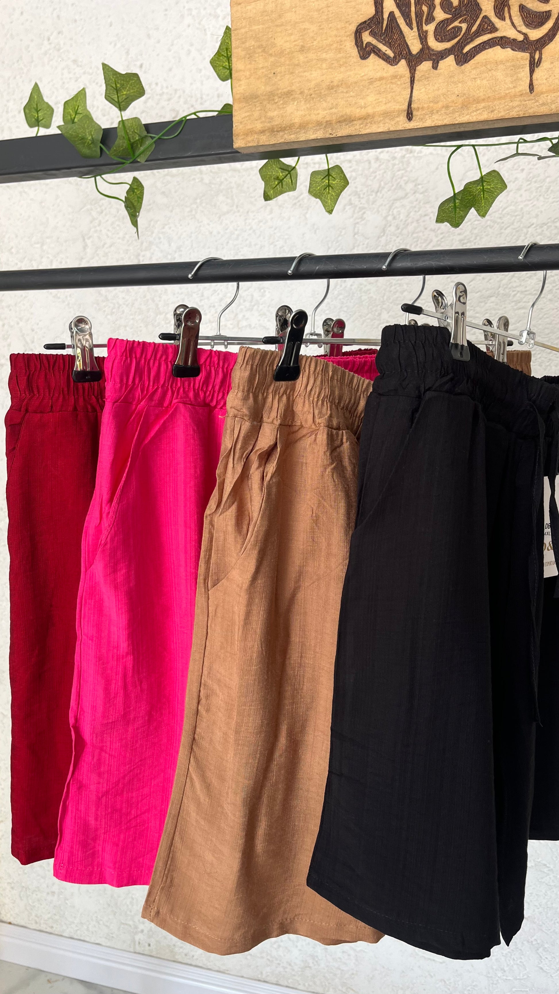Su cintura elastizada con lazo regulable se adapta cómodamente al cuerpo, brindando un calce relajado que no ajusta ni marca. El corte es suelto, favorecedor y estiliza las piernas, ideal para cuerpos reales y movimiento natural.